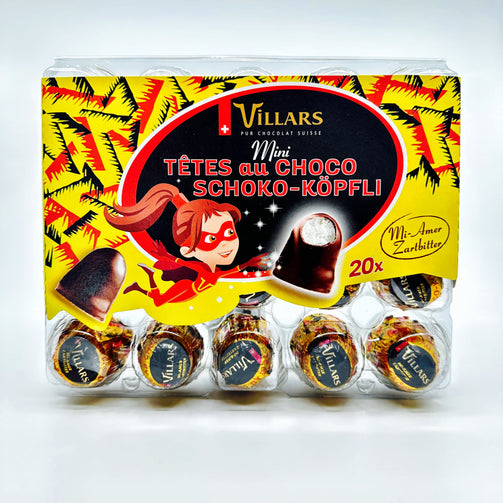 The small pleasure: the mini versions of the popular Villars Mini Schoko-Köpfli are gone faster than you’d like. Luckily, the Schoko-Köpfli never come alone and you get twenty of them in one package. The yummy White egg mousse is covered with Swiss chocolate couverture on a biscuit.
